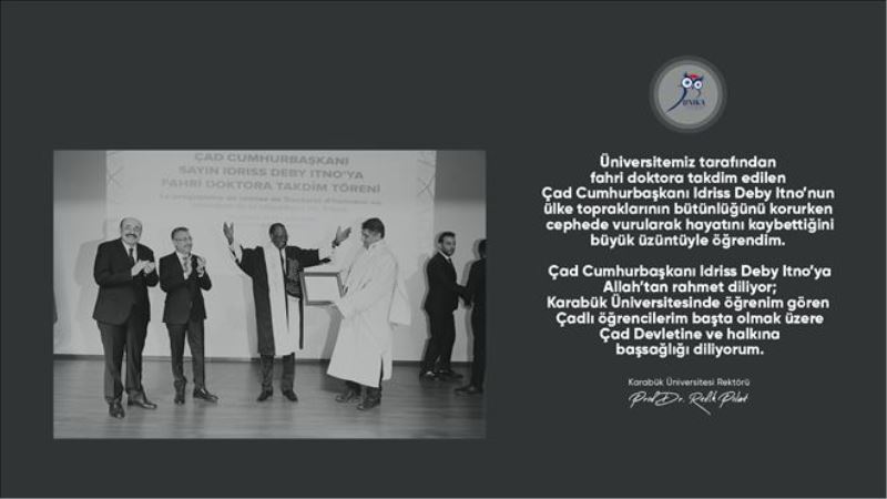 Rektör Polat mesajında, “Üniversitemiz tarafından Fahri Doktora takdim edilen Çad Cumhurbaşkanı Idriss Deby Itno´nun ülke topraklarının bütünlüğünü korurken cephede vurularak hayatını kaybettiğini büyük üzüntüyle öğrendim. Çad Cumhurbaşkanı Idriss Deby Itno´ya Allah´tan rahmet diliyor; Karabük Üniversitesinde öğrenim gören Çadlı öğrencilerim başta olmak üzere Çad Devletine ve halkına başsağlığı diliyorum.” dedi.