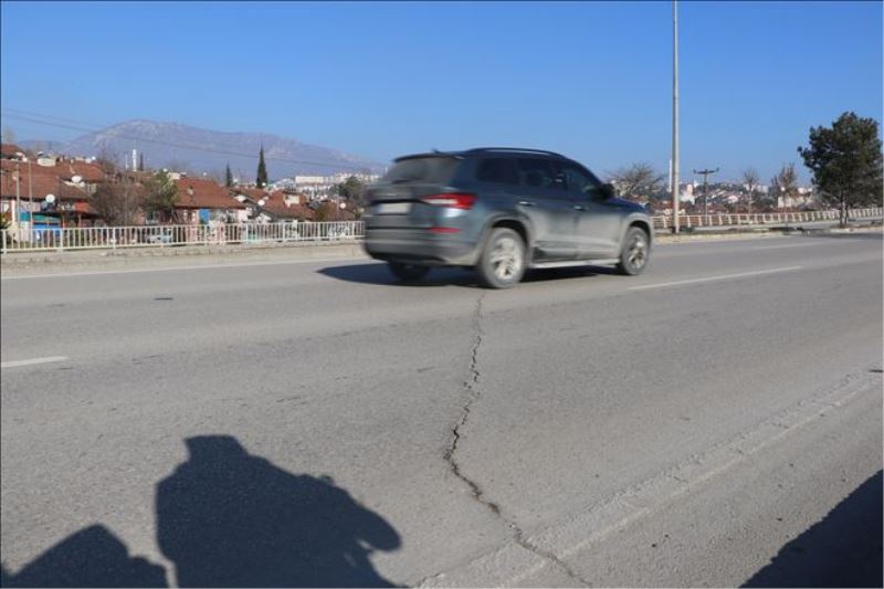 Yolda oluşan çatlakların fotoğraflarını çeken ekipler incelemenin ardından ayrıldı.