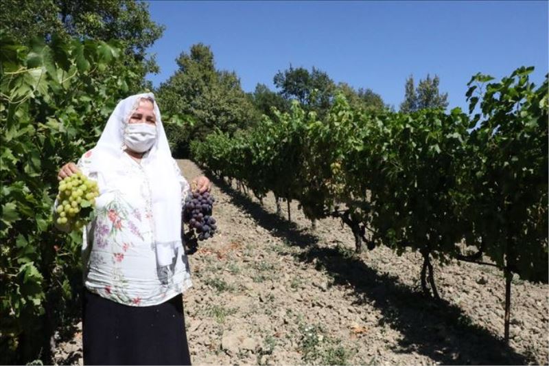 Çok meşakkatli bir iş olduğunu aktaran Özkan, 'Şubat ayında budama ile başlıyor. Bağlaması, ayırtması, aralarındaki fazla yolluklarını almak. Yetiştirdiğin zamanda yorgunluğun gidiyor. Devletin teşvikleri ile köyümüzde bağcılık yeniden canlandı ve ayaklandı. Bizde merak ettik yapıyoruz. İnşallah torunlarımızda yapar. Biz 13-15 yıldır yapıyoruz. Burası meyvelikti. Suyumuz olmadığı için bağcılığa döndük. Arkamda 3 tane torunum var. İnşallah onlarda devam ettirir. Onlara toprağı sevdirmeyi aşılamaya çalışıyorum' diye konuştu.