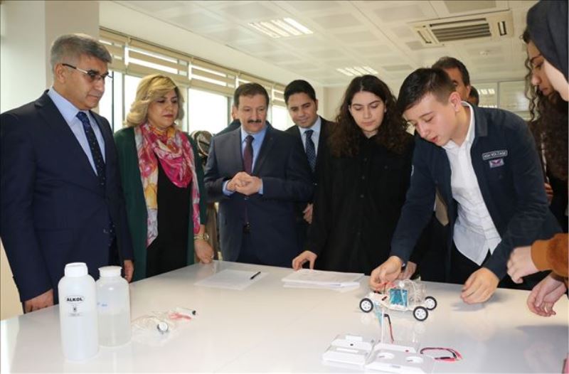Vali Gürel ve beraberindekilerin katılımıyla kütüphane ve laboratuvarın açılış kurdelesi kesildi.