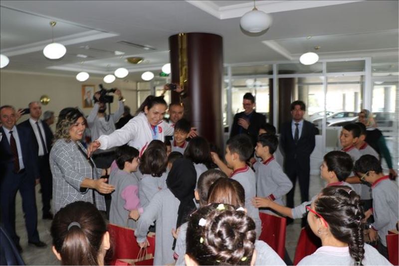 Çocuklardan milli boksör Elif Güneri´ye tebrik sarılması