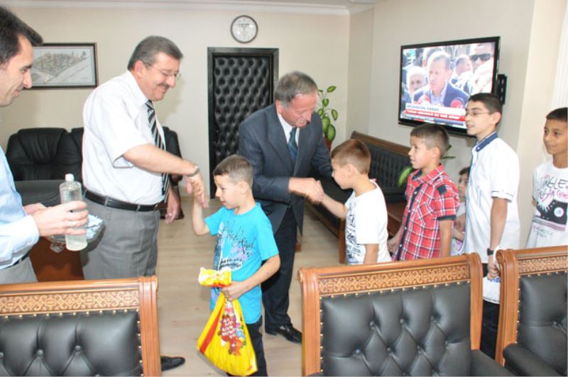 Bayramın gelmesi ile birlikte Ramazan`da yapılan etkinlikler için teşekkür etmek ve bayramlaşmak isteyen çocuklar soluğu Belediye Başkanı Dursun Baş’ın yanında aldı.