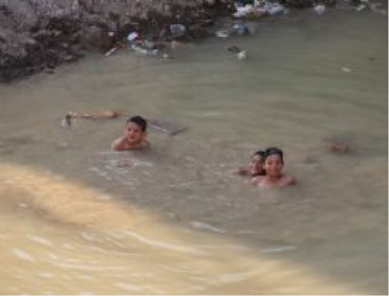 Tabanına beton atılmayan ve tamamen çamur olan yerde biriken suda tehlikeli bir oyun oynayan çocuklar, vatandaşlar tarafından uyarıldı. 'Havaların çok sıcak olmasından dolayı yüzmek istedik. Biz erkek adamız, çayda bile yüzdük' diye cevap veren çocuklar, uyarılar üzerine su birikintisinden çıktı.
