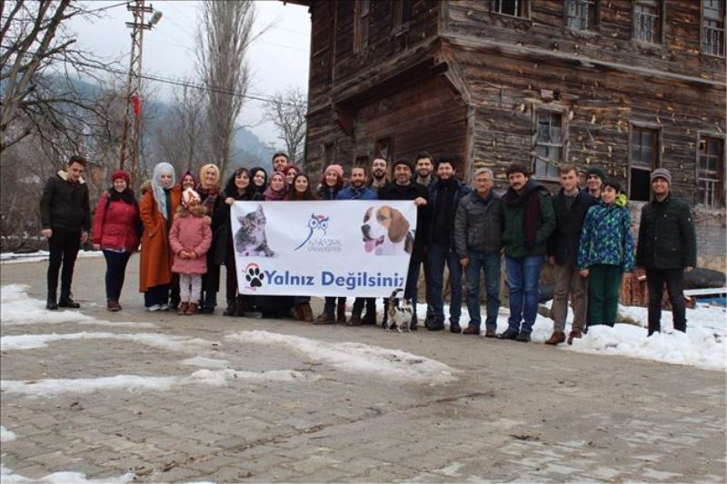 Sosyal sorumluluk projeleri kapsamında kış aylarında köylerde sahipsiz kalan kedi ve köpeklerin beslenmelerine bu şekilde destek olunuyor. KBÜ akademisyenleri ve Sesli Düşünme Kulübü öğrencileri bir araya gelerek doğadaki canlılara “Yalnız Değilsiniz” dediler. Hayvan dostu akademisyenler ve öğrenciler bu projeyle Üniversite yemekhanesinde toplanan yemek atıkları ile bilikte temin ettikleri mamaları Eskipazar ilçesinin iki farklı köy yolu üzerindeki mahalle ve köylere dağıttı. Zorlu yol şartlarının ardından yemek atıkları ve mamalar soğuk kış şartlarında sokakta yaşayan hayvanlara ulaştırıldı. Köylüler tarafından sevinçle karşılanan etkinlikte kuşlar da unutulmadı. Ekip, kuşlar için temin edilen 20 kilogram kuş yemini de arazide uygun yerlere bıraktı.