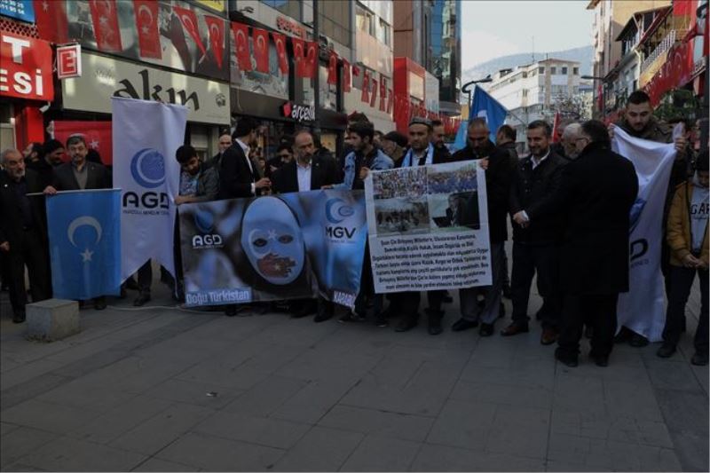Anadolu Gençlik Derneği (AGD) Karabük Şubesi tarafından Çin´in Doğu Türkistan´daki insan hakları ihlalleri protesto edildi. Kemal Güneş Caddesi üzerinde toplanan dernek üyeleri, ellerin Türk ve Doğu Türkistan bayraklarıyla Çin´e tepki gösterdi. Kalabalık 'Avrupa Birliği değil, İslam Birliği', 'Müslüman uyuma kardeşine sahip çık' sloganları attı. AGD Karabük Şube Başkanı Aziz Gündoğdu, 2. Dünya Savaşı´nın ardından geçen 74 yıla rağmen yeryüzünde barış ve adaletin tesis edilemediğine tanıklık ettiklerini söyledi.