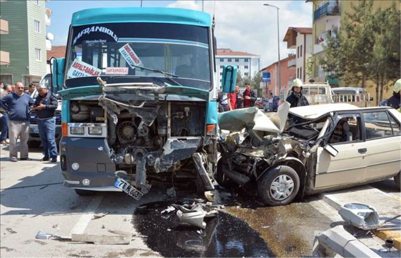 Edinilen bilgiye göre, Yeşil Mahalle Atatürk Bulvarında, Hüseyin Akyüz (21) yönetimindeki 78 BE 528 plakalı otomobil, sürücüsünün direksiyon hakimiyetini kaybetmesi sonucu karşı şeride geçerek Karabük-Safranbolu arasına yolcu taşıyan Mustafa Korkut (42) idaresindeki 78 M 6039 plakalı dolmuşa çarpıştı. Kazada sürücüler ile birlikte otomobil de bulunan Hande Pınar Özkaya (19) ve dolmuş yolcularından Seyhan Avcı (27), Hasan Doğan Can Mangaltepe (22), Ali Yeniay (19), Yasin Kemal Akgül (20), Yelda Nur Akıncı (15), Eren Avcı (6), Azra Avcı (3), Esin Çelikkaya (43) Kübra Söyler (24), Nurcan Yılmaz (26), Reyhan Cıkıcıoğlu (18) ve Bayram Kıraç (56) yaralandı.