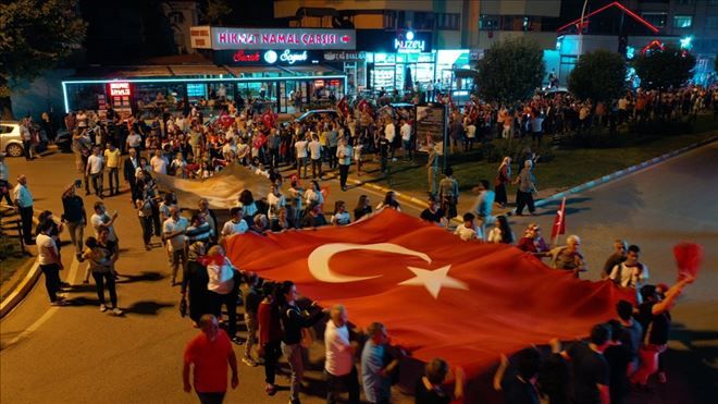 Sunal Tülbentçi Öğretmen Evi önünden başlayan Kortej Yürüyüşü Misak-ı Milli Demokrasi Meydanınde son bulurken yürüyüşe binlerce Safranbolulu bayrakları ile birlikte geldi.