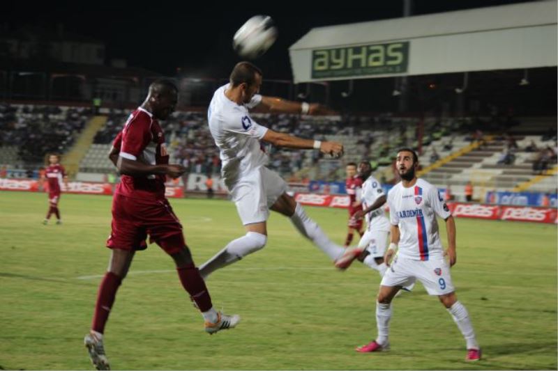 1. dakikada Elazığpor sol kanattan geliştirdiği atakta Serdar ceza alanı dışında topu auta attı.