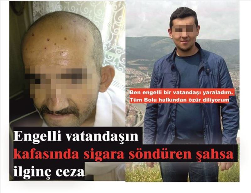 Mahkeme heyeti, Melih A.´ya verilen kararın kesinleşmesinden 1 hafta sonraki günden başlamak üzere, iş yerinin görünür bir yerine 3 ay süreyle 50x50 santimetre boyutlarında üzerinde “Ben bir engelli vatandaşı yaraladım. Tüm Bolu halkından özür diliyorum” şeklinde broşür asması yükümlülüğüne tabii tutulması kararlaştırıldı. Sanık Melih A.´nın, karara 7 gün içinde itiraz etme hakkı bulunduğu, eğer itirazı kabul edilmezse broşür asma kararını 1 Şubat tarihinden itibaren uygulamaya başlayacağı öğrenildi.