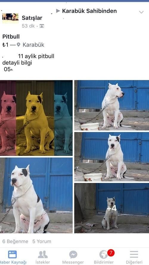 Orman ve Su İşleri Karabük Şube Müdürlüğü ekipleri, polis ve zabıta ekipleri ile birlikte ihbar üzerine 11 aylık Pitbull´u Facebook´ta verdiği ilanla satışa çıkaran K.E. isimli kişinin Yeni Mahalle´deki evine gitti. Belediye veteriner hekiminin yaptığı incelemede köpeğin Pitbull cinsi olduğu belirlendi. El konulan köpek, belediye hayvan barınağına götürüldü. Köpeğin sahibi K.E.´ye ise 5199 sayılı Hayvanları Koruma Kanunu´nun, ´Pitbull, terrier, japanese tosa gibi tehlike arz eden hayvanları üretmek, sahiplendirilmesini, ülkemize girişini, satışını ve reklamını yapmak, takas etmek, sergilemek ve hediye etmek yasaktır´ şeklindeki 14´üncü maddesine aykırı hareket etmekten 5 bin 26 lira idari para cezası uygulandı.