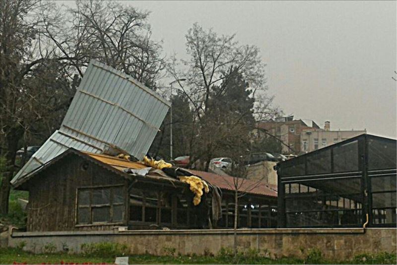 İş yeri çalışanları, rüzgarın bir anda çıktığını ve ne olduğunu anlayamadıklarını belirterek, rüzgarın söktüğü saçların ise şans eseri ağaca takılarak kimseye zarar vermediğini söyledi.