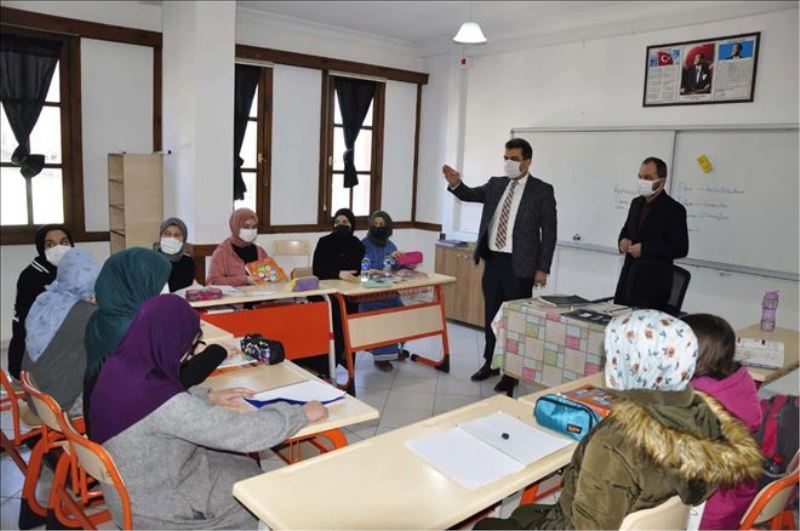 Abdurrahman Yerlikaya Kız Anadolu İmam Hatip Lisesi Okul Müdürü Mustafa Türkoğlu´ndan okulda yürülülen çalışmalar hakkında bilgiler alan Safranbolu İlçe Milli Eğitim Müdürü Hasan Gümüş daha sonra sınıfları gezerek öğrencilerle geleceğe yönelik hedefleri, kitap okuma kültürü ve öğrenciler tarafından yürütülen projeler üzerine karşılıklı sohbet etti.