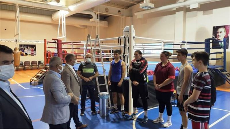 Vali Fuat Gürel, Antrenörleri Baykan Arslan nezaretinde Yeni Mahalle Merkez 2500 kişilik Kapalı Spor Salonunda antremanlarına devam eden Boks Takımını ziyaret etti.