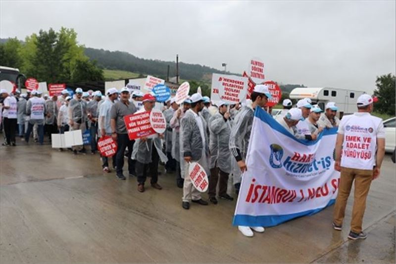 Yürüyüş öncesinde açıklama yapan Hizmet İş Sendikası Genel Başkan Yardımcısı Halil Özdemir, “Dün eylemin 49´uncu gününde Bolu Belediyesi´nin önünde binden fazla arkadaşımızla Ankara´ya yürüyüşümüzü başlattık. İlk hedefimiz 20 kilometreydi. Dün aşırı yağmur olmasına rağmen hiçbir arkadaşımız pes etmeden 18 kilometrelik mesafeyi yürüdük. İnşallah bugün 50´inci günümüz. Bugün de kaldığımız yerden 18-20 kilometrelik yürüyüşümüzle devam edeceğiz. Yağmur da olsa çamur da olsa her türlü hava şartlarında genel başkanımızın söylediği şekilde CHP Genel Merkezi´nin önüne kadar yürüyeceğiz. Amacımız Türkiye´de yapılan bu işçi kıyımının biran önce durdurulması. CHP´li belediyeleri özellikle işçilerin herhangi bir siyasi görüşüne bakmadan seçimlerden hemen sonra Türkiye genelinde işten atmalara başladı. Dün yağmurda, çamurda yürüyen 50 gündür eylemlerine devam eden arkadaşlarımız belediyelerden makam istemiyor. Koltuk istemiyor. Aşırı ücret de istemiyor. Bunlar sadece çocuklarına götürecek bir rızık istiyor” dedi.