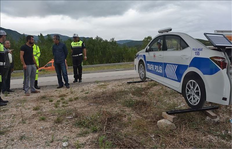 Karabük İl Emniyet Müdürlüğü, trafik kazalarının sık meydana geldiği ´kara nokta´ olarak tabir edilen Karabük-Gerede yolunun Üçevler mevkisi ile Karabük-Bartın yoluna maket trafik polisi aracı yerleştirdi. 3 boyutlu, güneş enerjisi paneli yardımıyla çalışan çakar lambalı maket trafik polisi araçları, bayram öncesi belirlenen iki noktaya monte edildi. Uzaktan bakıldığında gerçek izlenimi veren ancak yanına yaklaşıldığında maket olduğu anlaşılabilen araçların yerleri belirli zamanlarda değiştirilecek.