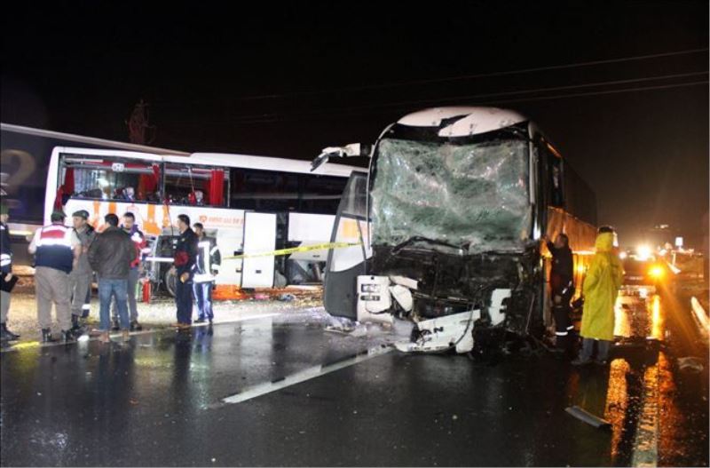 Otobüs şoförü Ali C., yakıt almaya girmek için karşı yola geçmeye çalışan otobüse TIR´ın çarpıp kaçtığını daha sonra ise kendi otobüslerinin ise duramayarak otobüse çarptığını söyledi.