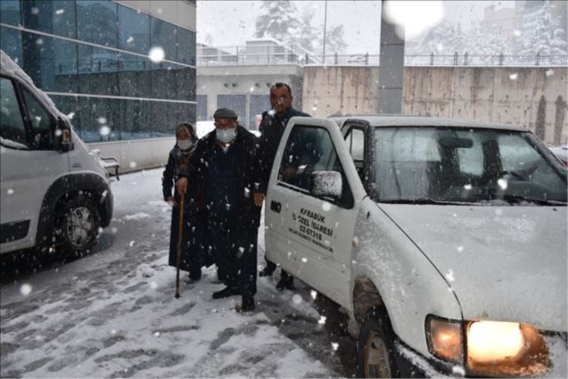Karla mücadele ekipleri tarafından köyünden alınan yaşlı adam tedavisine devam edilmesi için Karabük Eğitim Araştırma Hastanesi´ne getirildi.