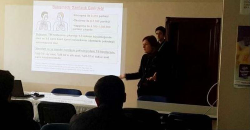 Toplantıda; Halk Sağlığı Müdür Yardımcısı Dr. Simge Özgüner, İl Tüberküloz Koordinatörü Dr. Volkan Dikbaş, Mikrobiyoloji Uzmanı Dr. Erhan Başar tüberküloz hastalığında yapılması gereken işlemler hakkında genel bir sunum yaptılar.