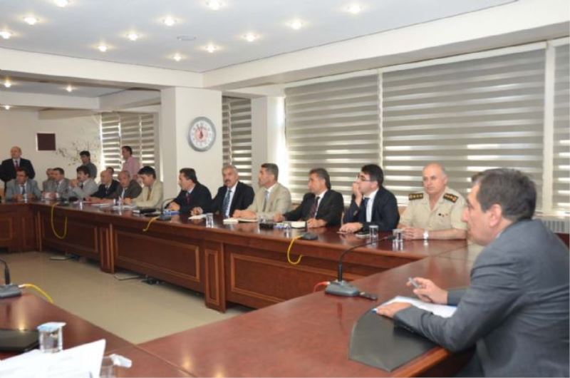 5442 sayılı İl İdaresi Kanununun 24. maddesi gereği, idarede birliğin sağlanması, yapılacak çalışmaların gözden geçirilmesi, teşkilatın ahenkli çalışması için gereken tedbirlerin alınması, varsa sorunların giderilmesi amacıyla gerçekleştirilen İl İdare Şube Başkanları toplantısı yapıldı. Valilik Toplantı Salonunda Vali İzzettin Küçük başkanlığında gerçekleştirilen toplantıya; Garnizon Komutanı Jandarma Kıdemli Albay Samit Tokmak, Vali Yardımcıları Abidin Ünsal ve Erkan Çapar, İl Emniyet Müdürü Oktay Keskin ile daire müdürleri katıldı. Toplantıda ağırlıklı olarak yeni eğitim ve öğretim yılının başlaması dolayısıyla alınacak tedbirler görüşülürken, sağlık, çevre ve hava kirliliği, kurban kesim yerleri, resmi bayram ve törenler, kılık kıyafet, mesai saatleri ile yapılan yatırım ve faaliyetler konuları da ele alındı.