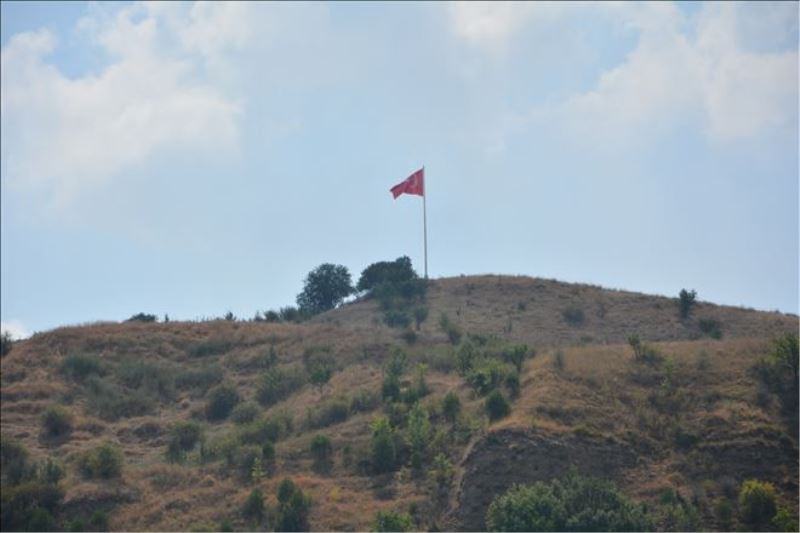 Öğlebeli Mahallesi´ndeki 25 metrelik direğe yeni Türk Bayrağı takılarak yeniden göndere çekildi.