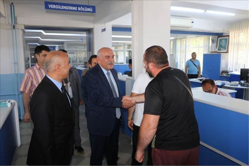 Sinop Valisi Hasan İpek, 7020 Sayılı Kanun kapsamında Vergi Yapılandırmasında son müracaat tarihinin 30 Haziran 2017 tarihi olması nedeniyle kamuoyunun dikkatini çekmek amacıyla Sinop Vergi Dairesi Müdürlüğü´nü ziyaret ederek, Vergi Dairesi çalışanları ve işlem yaptıran vatandaşlarla sohbet etti ve vergi yapılandırmasında son günün 30 Haziran olduğu çağrısında bulundu. Sinop Defterdarı Naci Günaydın´dan Vergi Dairesinin 30 Haziran 2017 Cuma günü Saat 24:00´e kadar açık bulundurulacağı bilgisini alan Sinop Valisi İpek, Vergi Dairesi çalışanlarına işlerinde kolaylıklar diledi.