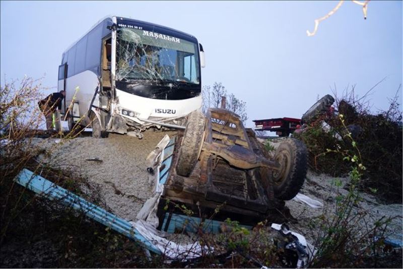 Edinilen bilgiye göre Hanönü ilçesinde faaliyet gösteren maden ocağında çalışan işçilerin bulunduğu Burhan Karaoğlu (50) idaresindeki 37 LJ 969 plakalı otobüs ile Sabri Kalafatoğlu (62) yönetimindeki 37 DA 978 plakalı küspe yüklü römorklu traktör, Kastamonu-Taşköprü karayolu Ayva Köyü Mevki´inde çarpıştı. Otobüsün traktöre arkadan vurmasıyla meydana gelen kazada küspe yüklü traktör ile otobüs, yoldan çıkarak şarampolde sürüklendi. Devrilen traktörün altında kalan sürücü Sabri Kalafatoğlu ve otobüs sürücüsü Burhan Karaoğlu ile maden ocağında çalışan işçilerden İsmail Yaşar (50), İbrahim Kayabalı (51), Hasan Yaşar (50), Cengiz Çevik (45), Abdullah Aydemir (25), İsmail Kara (38), Hayati Tonturoğlu (53), İsmail Öter (63), Hamide Etyemez (36) ve Şükrü Çevik (41) yaralandı. Yaralılar, olay yerine sevk edilen çok sayıda ambulansla Kastamonu Devlet Hastanesine kaldırılarak tedavi altına alındı.