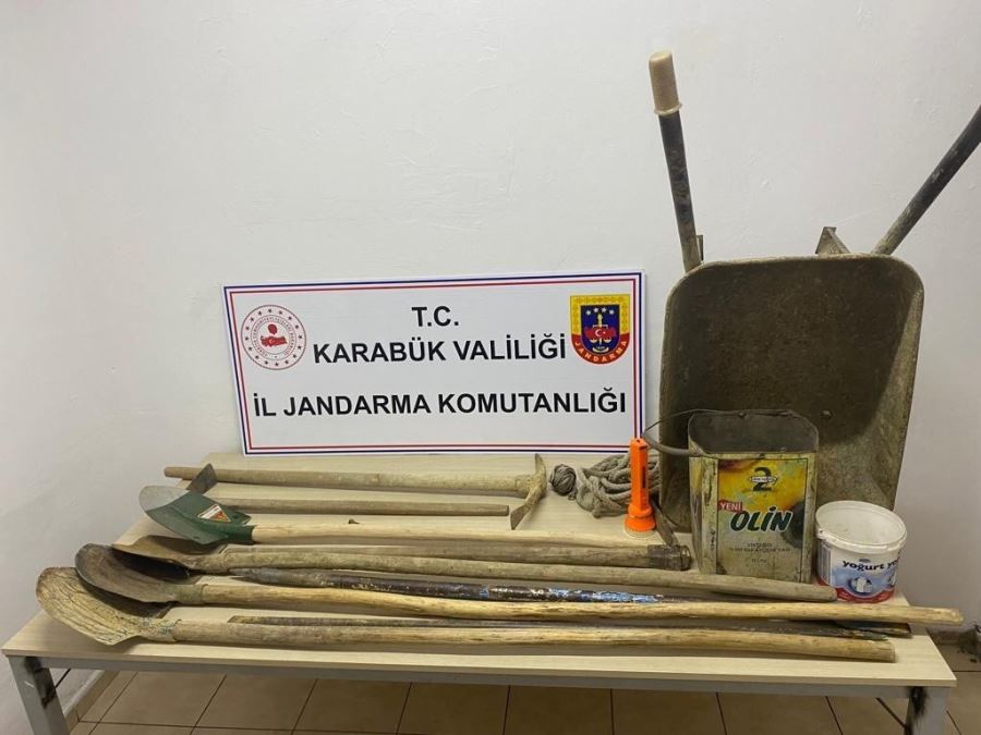 Operasyonda 4 adet kürek, 2 adet manivela, 3 adet kazma, 15 metre ip, kova, el arabası ve el feneri ele geçirildi.