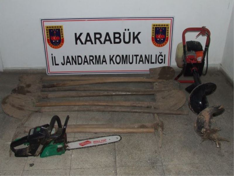 Edinilen bilgiye göre, Karabük merkezine yakın bir bölgedeki kırsal alanda kaçak kazı yapıldığı ihbarını alan İl Jandarma Komutanlığı ekipleri, bölgeye operasyon düzenledi. Yapılan operasyon sonucunda kaçak kazı yaptığı belirlenen Y.İ., D.Ü.,D.Y.,R.B. ve M.E.A. isimli şahıslar gözaltına alındı. Jandarma ekipleri tarafından gözaltına alınan şahıslarla birlikte kazıda kullanılan toprak delme makinesi, hızar motoru, 6 adet kürek ve iki adet kazma ele geçirildi.