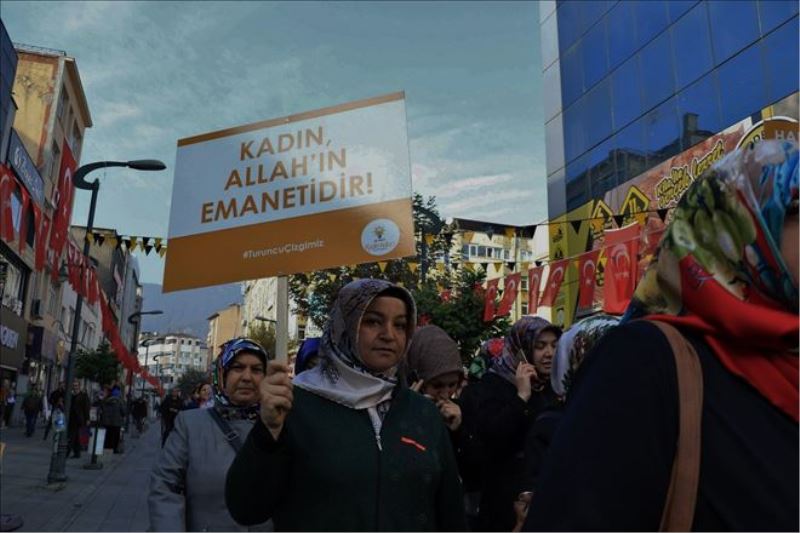 AK Parti Karabük İl Başkanlığı önünden başlayan ve şehir merkezinde tur atıldıktan sonra parti binası önünde sona eren yürüyüşte kadınlar, 'Kadın ve erkek biriz, birlikte güçleneceğiz', 'Sevgi şifadır', 'Sesimizi sende duy' yazılı pankartlar taşıdı.