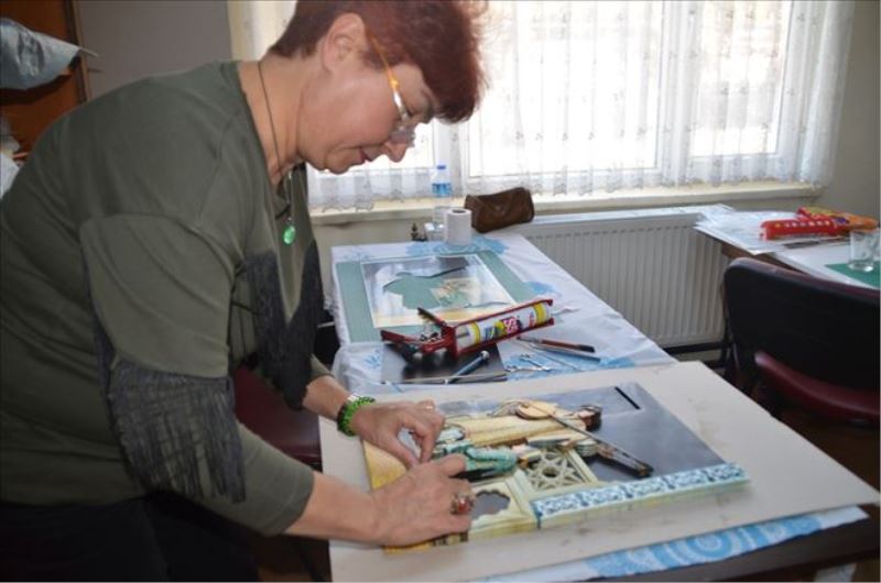 SAKEM Aşağı Tokatlı şubesinde Saime İpek Ceylani tarafından verilen ‘´Kağıt Rölyef´´ kursunda, kursiyerler birbirinden farklı eserler üretiyor.