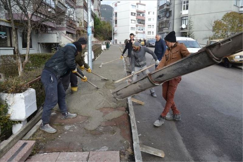 Kaldırımsız hiçbir sokak bırakmamak için çalışmalarını hummalı bir şekilde sürdüren Karabük Belediyesi Fen İşleri ekipleri, tamirat gerektiren mevcut kaldırımlara da anında müdahale ediyor.