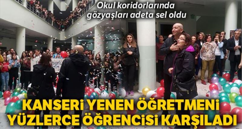 Öğrencilerinin sevgi seli eşliğinde ´yuvam´ dediği okuluna yeniden dönen öğretmen Muharrem Poyrazoğlu öğrencilerinin sürprizi karşısında gözyaşlarına hakim olamadı.