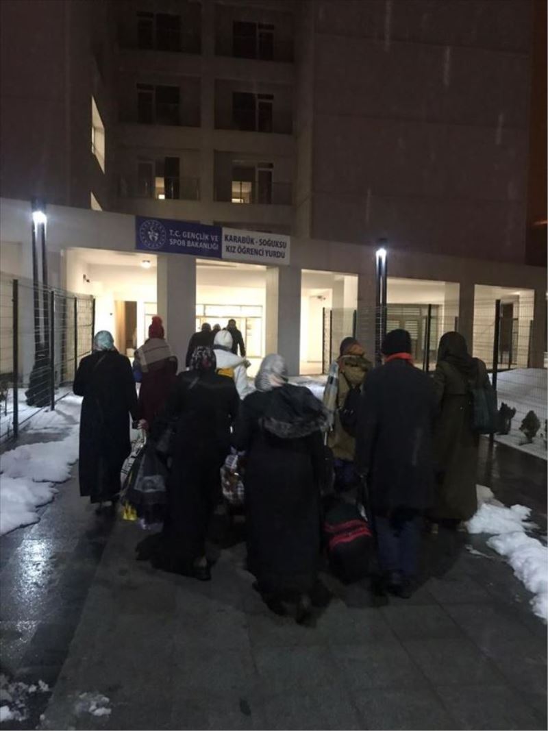 Karabük-Eskipazar karayolunun yoğun kar yağışı dolayısıyla İstanbul ve Ankara istikametine gidecek olan araçlara kapatıldığı duyurulmuştu. Kastamonu ve Sinop´tan bu iki il istikametine seyir halindeyken Karabük´te durdurulan 3 otobüsteki 99 yolcu için İl Afet Ve Acil Durum Müdürlüğü ekipleri harekete geçti. İkinci bir duyuruya kadar ulaşımın durmasının ardından yolcular Soğuksu Kredi Yurtlar Kurumuna yerleştirildi.