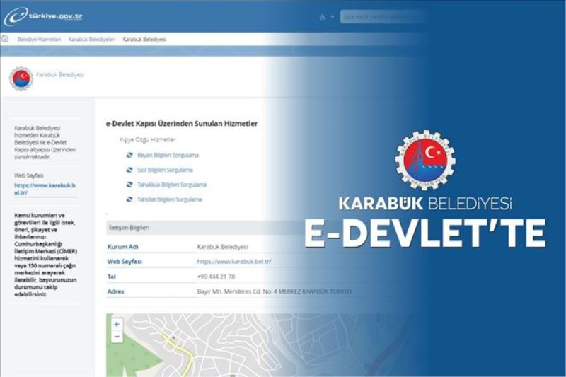 Karabük Belediyesi´ne artık E-Devlet portalı üzerinden güvenli bir şekilde ulaşılarak, birçok belediyecilik hizmetinin hızlı ve güvenli bir biçimde gerçekleştirebileceği belirtildi.