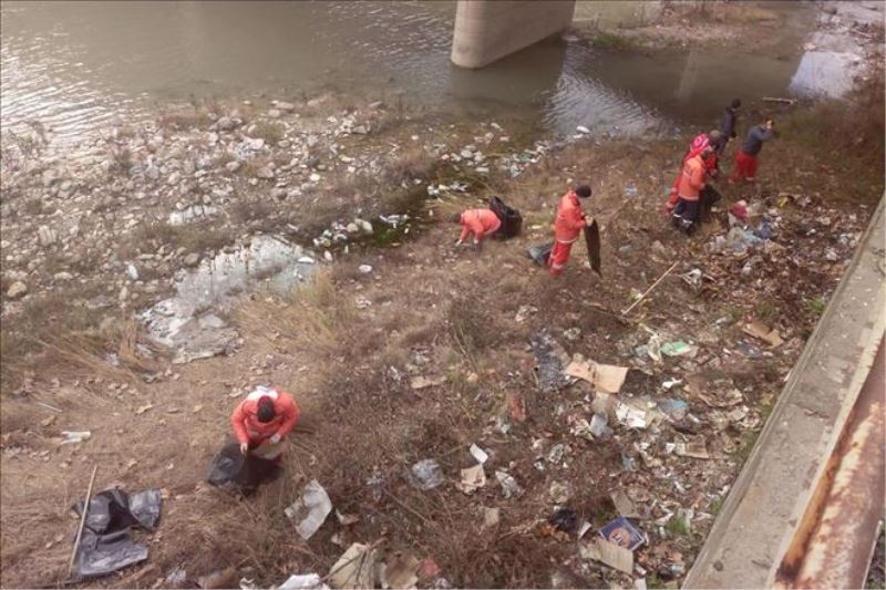 Karabük´ü “Pırıl Pırıl” yapmak için çalışmalarına devam eden ekipler, Kayabaşı Mahallesi Köprüsü altında temizlik çalışmalarını sürdürdü.