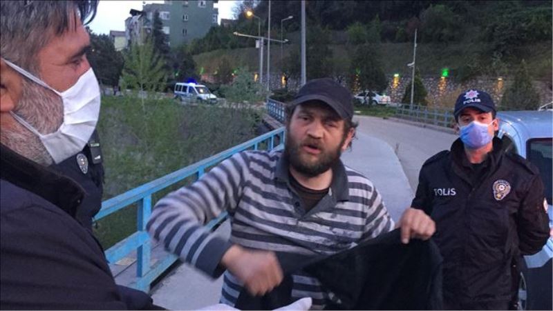 Karabük´te dereye atlamak isteyen bir kişi, polisler tarafından kurtarıldı. Kurtarılan şahsın korona virüsü umursamayan sözleri dikkat çekti.
