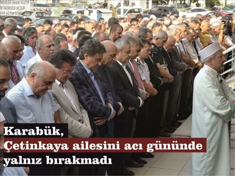 Merhum Ahmet Çetinkaya´nın cenaze namazı ikindi namazına müteakip 5000 Evler Merkez Camii´nde kılındı. Cenaze namazına Vali Fuat Gürel, AK Parti Karabük Milletvekili Niyazi Güneş, Karabük Belediye Başkanı Rafet Vergili, Karabük Üniversitesi Rektörü Prof. Dr. Refik Polat, İl Emniyet Müdürü Sırrı Tuğ, İl Jandarma Komutanı Jandarma Kıdemli Albay Ali Sefa Yılmaz, KARDEMİR A.Ş Yönetim Kurulu Başkanı Kamil Güleç, Karabük Özel Sektör Demirçelik Haddecileri Derneği Başkanı Pehlivan Baylan, İl Özel İdaresi Genel Sekreteri Mehmet Uzun, Safranbolu Belediye Başkanı Elif Köse, Yenice Belediye Başkanı Zeki Çaylı, Karabük Üniversitesi Rektör Yardımcıları Prof. Dr. Mustafa Yaşar, Karabük Defterdar Osman Koçaş, Aile, Çalışma ve Sosyal Politikalar İl Müdürü Galip Sökmen, Sosyal Güvenlik Kurumu İl Müdürü İsmail Yıldırım, İl Tarım ve Orman Müdürü Çetin Ayvalık, Karabük İl Müftüsü İlyas Yılmaztürk, Karabük İl Milli Eğitim Müdürü Mehmet Fatih Vargeloğlu, İl Sağlık Müdürü Dr. Ahmet Sarı, siyasi parti temsilcileri, meclis üyeleri, kurum ve daire müdürleri, STK temsilcileri, basın mensupları ve sevenleri katıldı.