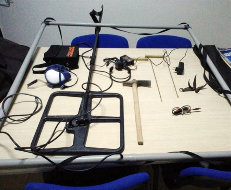 Koruma alanı içerisinde olan bölgede kaçak kazı yapıldığı ihbarı üzerine İl Jandarma ekipleri harekete geçti. Bölgede kaçak kazı yapan M.B., S.A.E., Y.E.T. ve K.Ş., suçüstü yakalanarak gözaltına alındı. Kazıda kullanılan 1 adet el dedektörü, 2 adet bakır tel, 1 adet el çapasına el konuldu.