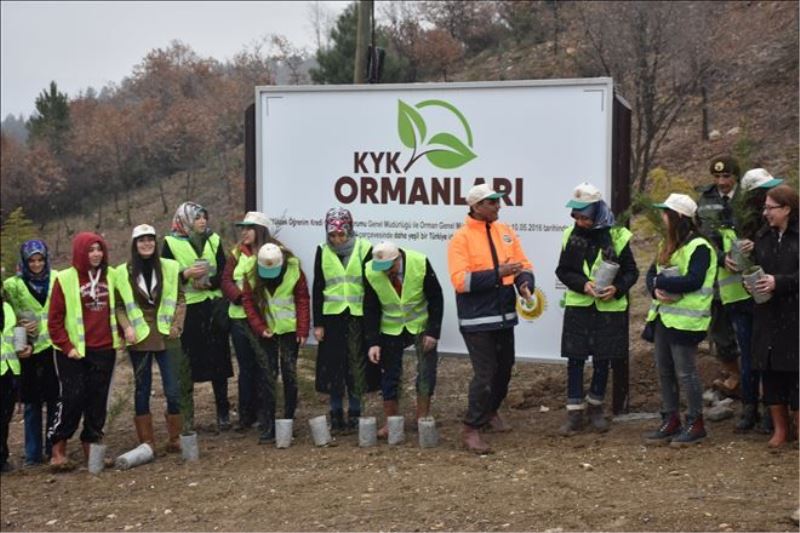 200 öğrenci ile birlikte fidan dikimi yaptıklarını belirten KYK Kredi Yurtlar Kurumu İl Müdürü Kadir Öztürk, ”Orman ve Su İşleri Bakanlığı ve Kredi Yurtlar Kurumu (KYK) tarafından düzenlenen bu projeyle hem birlik ve beraberliğimizi pekiştirirken bir taraftan da ormanlarımızı yok olmaktan kurtarıyoruz. Üniversite kampus alanı yanında oluşturulan KYK ormanlarımıza yurtlarda barınan öğrencilerle bir araya gelerek çevre bilincini aşılamak ve doğa sevgisini kazandırmak için fidan dikimi yaptık. Proje kapsamında 5 yıl boyunca Kredi Yurtlar Kurumu yurtlarına kayıt yaptıran öğrenciler fidan dikecek” dedi.