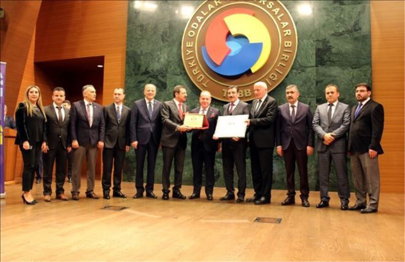 53 puanla 11. Dönem Akreditasyon Sertifikasından birinci olan Karabük TSO´nun 5 yıldızlı hizmet sertifikası ve plaketini TSO Başkanı Tuncay Özcan, Yönetim Kurulu üyeleri İlhan Özçelik ve Fatih Çapraz, Genel Sekreter Cem Biçen ve Oda çalışanları ile birlikte TOBB Başkanı Rifat Hisarcıklıoğlu ile Gümrük ve Ticaret Bakanı Bülent Tüfekçi´nin elinden aldı.