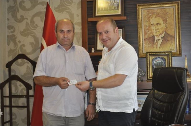 Karabük Ticaret ve Sanayi Odası tarafından takograf işlemlerinin başlaması nedeniyle bu çerçevede ilk sayısal takograf sürücü kartı başvurusu yapan Ergüller Mobilya Ltd Şti´nin sürücü kartı teslimi Karabük Ticaret ve Sanayi Odası Yönetim Kurulu Başkanı Tuncay Özcan tarafından yapıldı.