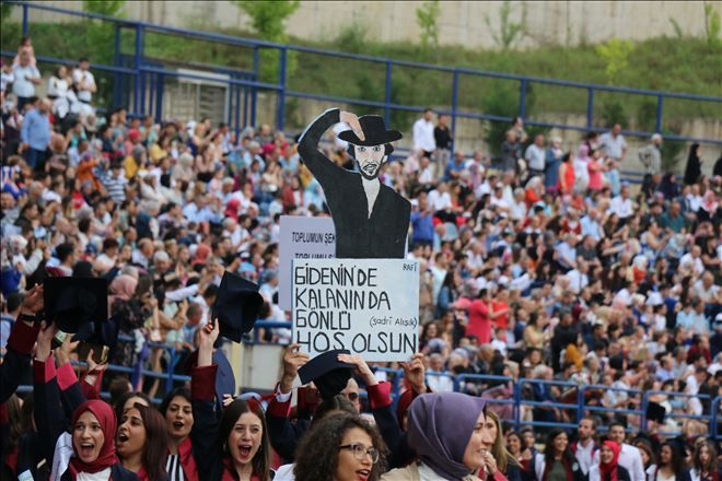 Mezuniyet töreni, mezun öğrencilerin yeminlerini ederek keplerini havaya fırlatmaları ve havai fişek gösterisi ile sona erdi.