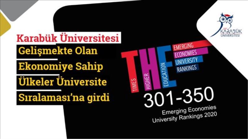 Dünyanın en prestijli sıralama kuruluşu olan Times Higher Education (THE) tarafından “Emerging Economies University Rankings 2020” (Gelişmekte Olan Ekonomiye Sahip Ülkeler Üniversite Sıralaması) açıklandı. Karabük Üniversitesi, bu sıralamada ilk 301-350 arasında yer alarak en iyi üniversiteler arasına girdi.