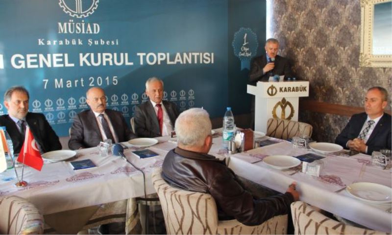 Saygı duruşu ve İstiklal Marşı’nın okunmasıyla başlayan genel kurulda konuşan kurucu Başkan Ahmet Nur, MÜSİAD ın Karabük’ te büyüyüp güçlenmesi için bir amacı olması gerektiğini belirterek, “ O amaçta; ülkemizin en güzel şehirlerinden biri olan Karabük’ümüzün tüm dinamikleri ile el ele gönül gönüle vererek ortak aklı ön plana çıkartıp Karabük’ümüzün ülke ekonomisine katkıda bulunmasını sağlamak, bu güzel kentimizi ülkemizdeki marka şehirlerle yarışır hale getirmek için ülkemizin ’Kamu yararına Dernek Statüsüne ‘ sahip güçlü bir Sivil Toplum Örgütü olan MÜSİAD çatısı altında toplanmış bulunmaktayız” dedi.