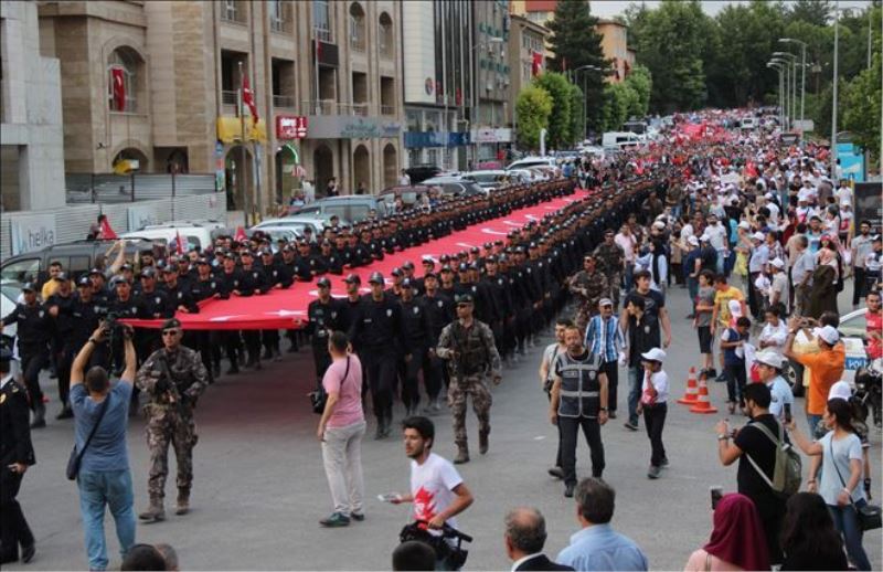'Şehitler ölmez vatan bölünmez' ve 'Ne mutlu Türküm diyene' sloganlarının atıldığı yürüyüşe, Karabük Valisi Kemal Çeber, Eski TBMM Başkanı ve AK Parti Karabük Milletvekili Mehmet Ali Şahin, AK Parti Karabük Milletvekili Burhanettin Uysal, Çevre ve Şehircilik Bakan Yardımcısı Mehmet Ceylan, Karabük Üniversitesi Rektörü Prof. Dr. Refik Polat, İl Jandarma Komutanı Albay Cihan Ulukaya ve Karabük Emniyet Müdürü Mehmet Emin Akay, özel hareket polisleri, siyasi parti, sendika ve sivil toplum kuruluşlarının temsilcileriyle şehit aileleri ve gaziler ile vatandaşlar katıldı.