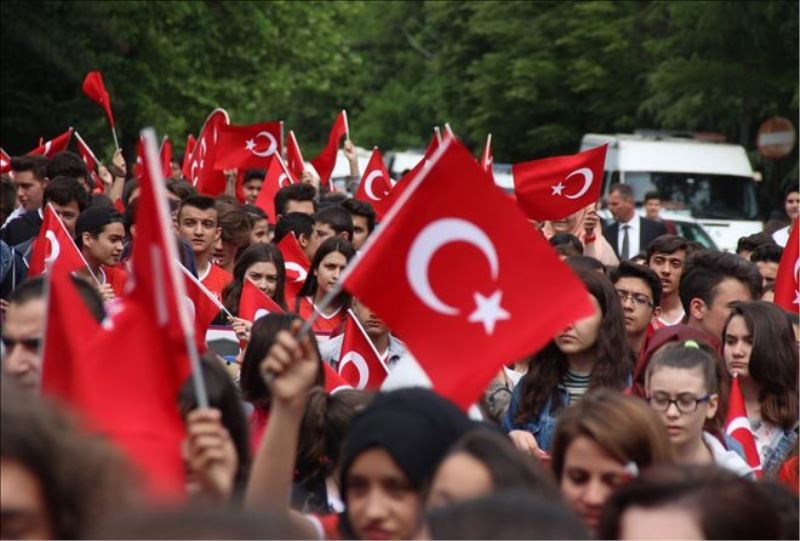 Karabük´teki bayram kutlaması kapsamında toplanan kalabalık, Şirinevler Mahallesi´nden Yenişehir Atatürk Anıtı´na yürüdü. Protokolün yanı sıra gençler ve sivil toplum kuruluşu temsilcilerinin de katıldığı yürüyüşte, gençler metrelerce uzunluktaki Türk bayrağı taşıdı.
