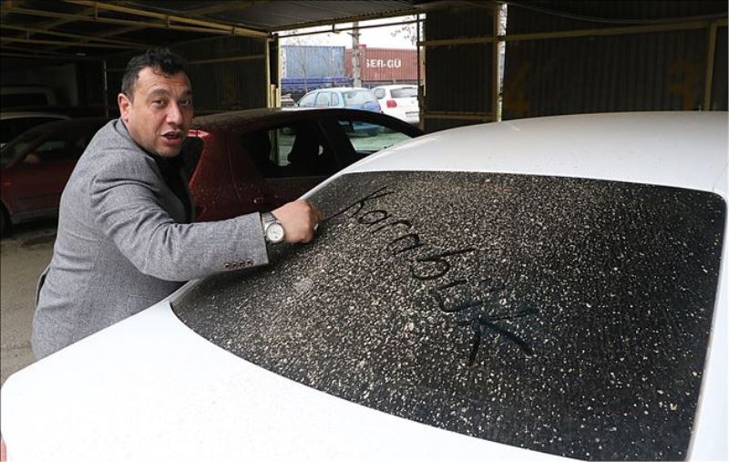 İşe gitmek için sabah saatlerinde araçlarının yanına gelen vatandaşlar, otomobillerinin üzerinin tozla kaplandığını gördü.