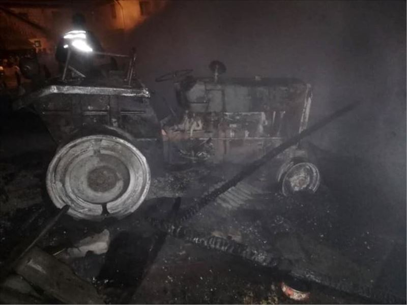 İtfaiye ekipleri uzun uğraşlar sonucunda yangını söndürürken, olayda iki samanlık ve 1 traktör yandı.