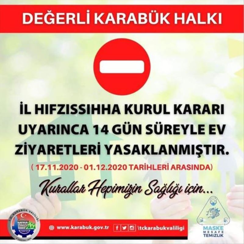 Vatandaşların kalabalık oluşturduğu banka, ATM cihazları, PTT, noter ve fatura ödeme noktalarının önlerinde, şehirlerarası otobüs terminalinde ve terminal dahil açık alanlarda, hastane önü ve bahçelerde sigara içilmesinin yasaklanmasına da karar verildiği belirtilen açıklamada, “İl, ilçe ve beldelerimizde 17 Kasım itibarıyla geçerli olmak üzere 14 gün boyunca tüm ev ziyaretlerinin yasaklanmasına, korona virüs tanısı konulan hastalarımızın ikamet ettikleri evlerinde yaşayan tüm aile fertlerinin beyanlarına bakılmaksızın temaslı kabul edilerek 14 gün süreyle izolasyona tabi tutulmalarına, alınan bu karara uymayanlara 1593 sayılı Umumi Hıfzıssıhha Kanunu 282. maddesi gereği ve 5326 sayılı Kabahatler Kanunu 32. maddesi gereğince idari para cezası ve konusu suç teşkil eden davranışlara ilişkin Türk Ceza Kanunu 195. maddesi kapsamında gerekli adli işlemlerin uygulanmasına karar verilmiştir” ifadelerine yer verildi.