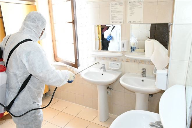 Belediye ekipleri, Türkiye´de görülen virüs karşısında ilk andan itibaren vatandaşların yoğun olarak kullandığı şehirler arası otobüs terminali, halk otobüsleri, dolmuşlar, pazar yerleri, alışveriş merkezleri, okullar ile umumi tuvaletlerde virüse karşı dezenfektasyon ve ilaçlama çalışmalarına başlamıştı.